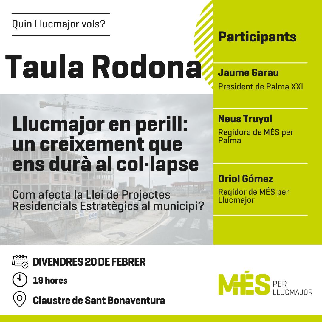 MÉS per Llucmajor és un projecte polític plural, ampli, que representa l’espai polític d’esquerres, sobiranista i ecologista del municipi de Llucmajor.
